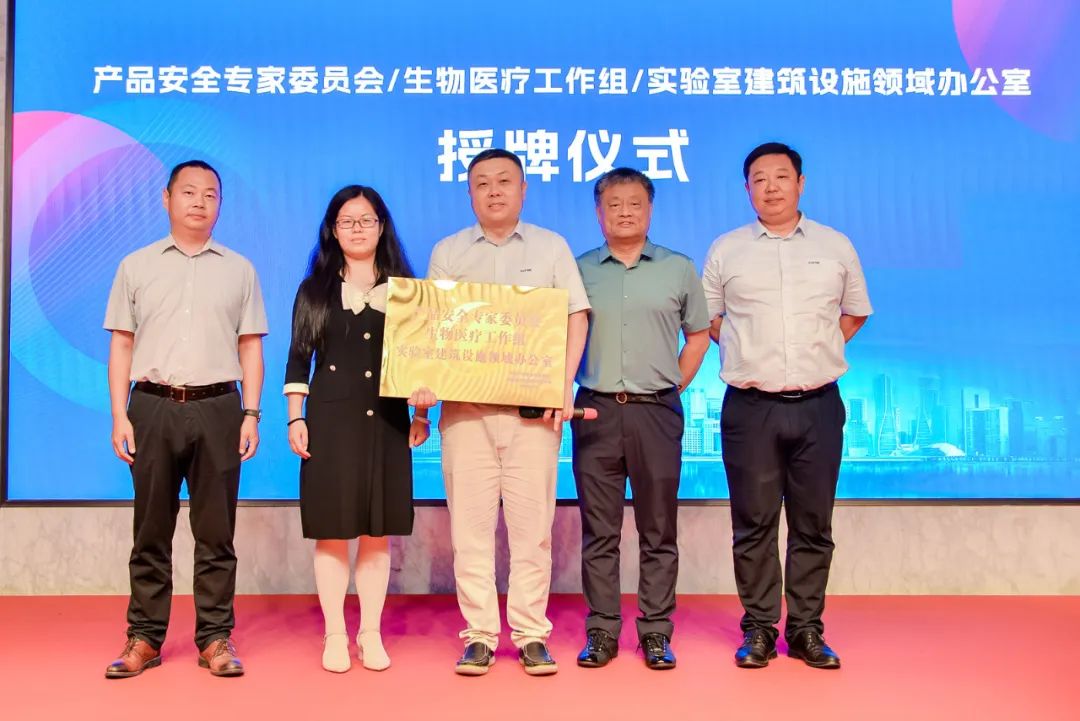 6月28日上午,论坛举办了“产品安全专家委员会/生物医疗工作组/实验室建筑设施领域办公室”授牌仪式,实验室建筑设施领域办公室设在中电四公司,刘培源作为实验室建筑设施领域办公室常设单位代表领取了牌匾,并对实验室建筑设施领域办公室的工作规划进行了介绍。