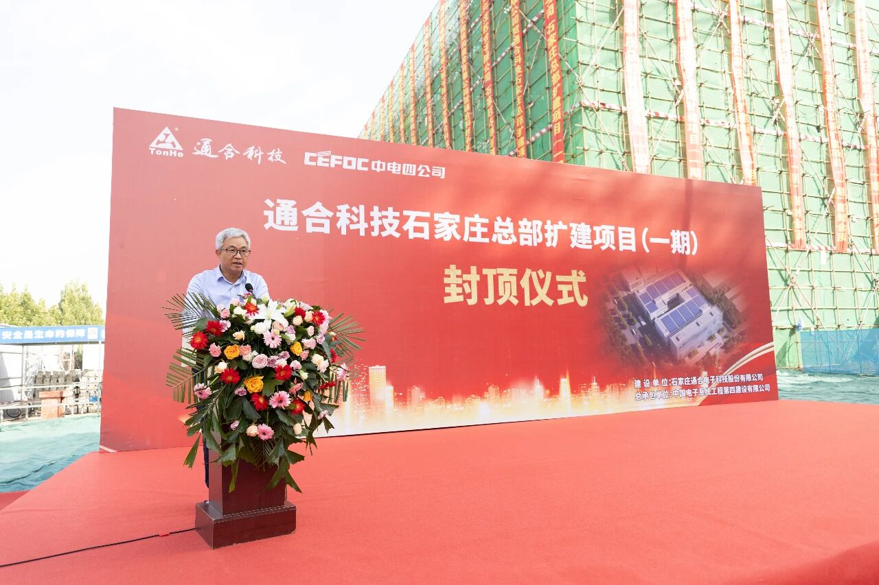 封顶仪式上,王晓亮发表致辞。他指出,石家庄通合电子科技股份有限公司作为河北省高新技术企业的杰出代表,一直走在产业创新的前沿。本项目被列为省重点工程,总建筑面积达5.3万平方米,建成后将实现年产高功率充电模块68万台,对推动区域新能源产业发展具有重要意义。