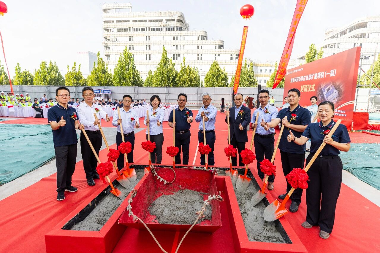 9月29日,由中电四公司承建的石家庄通合电子高功率充电模块产业化建设项目(一期)施工总承包项目顺利举行主体结构封顶仪式。桑达股份高级副总裁、中电四公司党委书记、董事长王晓亮,华北总部总经理葛怀建,半导体事业部副总经理回春,华北总部总经理助理郭阳等领导应邀出席,共同见证这一重要时刻。