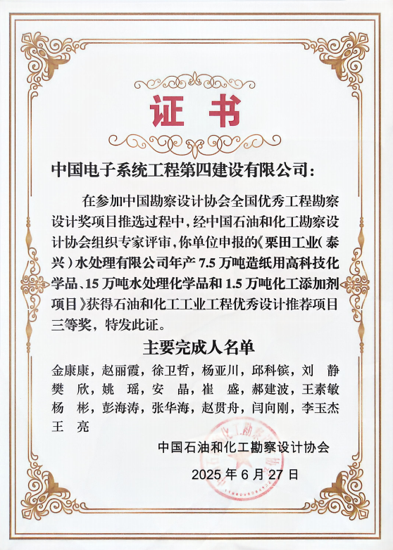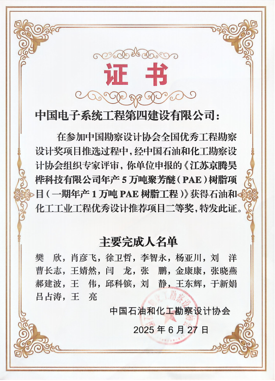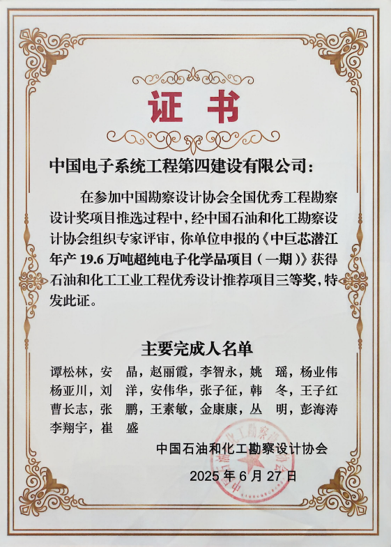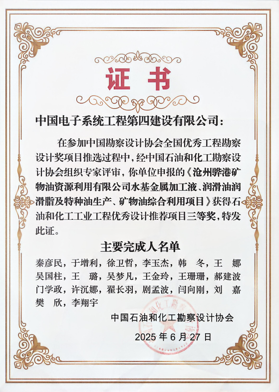 未来,中电四公司将以此次获奖为新的起点,持续深化设计能力建设,拓展技术边界,以更高标准、更强专业力服务客户、贡献行业,携手合作伙伴共同推动石油和化工勘察设计领域的高质量发展。