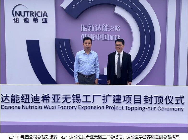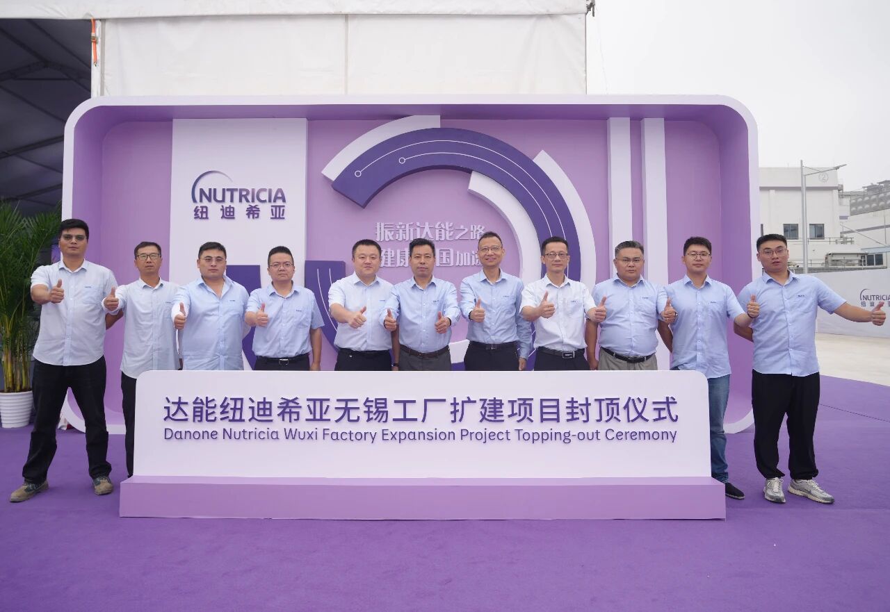 10月13日,由中电四公司承建的达能纽迪希亚无锡工厂扩建项目封顶活动在项目现场隆重举行,标志着这一备受瞩目的项目取得了重要的阶段性成果。无锡市副市长周文栋,无锡市高新区党工委书记、新吴区区委书记崔荣国,无锡市高新区党工委副书记、新吴区区长章金伟,无锡市新吴区江溪街道党工委书记周栋,法国达能集团首席执行官盛睿安,达能中国、北亚及大洋洲总裁谢伟博,达能首席运营官Vikram,达能中国、北亚及大洋洲区域营运副总裁陈敏君,达能纽迪希亚无锡工厂总经理、达能医学营养运营副总裁胡杰,中电四公司总裁刘谦辉、华东总部总经理姚维雁等领导应邀出席,共同见证这一重要时刻。