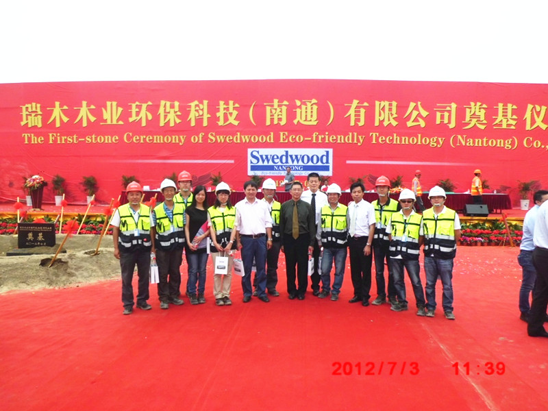 2012年7月3日,公司高级副总裁刘谦辉、副总裁周翃等应邀参加南通瑞木木业项目开工奠基仪式。